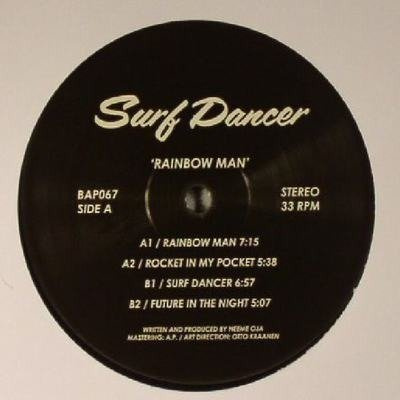 The frosts of Finland are blasted away by the radiate synthesizer sunlight of Surf Dancer! Rich analogue textures are supported by Surf Dancer's love of the vocoder, computer-spoken lyrics twirling amidst addictive melodies and clean-cut beats. Sweet notes and even sweeter words swirl in this world of ray guns, unicorns and of course rainbows. Strings soar skyward in the elation of "Rainbow Man" before the sleek funk of "Rocket in my Pocket". Joy pours from the needle drop, instant happiness and body moving music from start to finish, the end coming in the xylophonic goodness of Future in the Night".