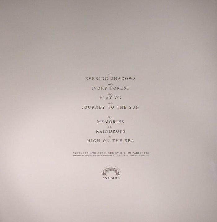 No more pool parties, no more red-hot cars on the road to Miami; with his third release (and second album) on Antinote, Parisian producer D.K. gives his music a new direction. While his previous 12”, Love On Delivery (ATN016), was a perfect soundtrack to your endless nights spent on Outrun on Sega Genesis, Island Of Dreams will more likely incite you to turn on your old Mackintosh and play Myst again. With Evening Shadows, D.K. slowly unveils a very personal virtual landscape, letting us approach his island of dreams, while Ivory Forest already invites us to loose ourselves in a wood in which the babblings of synthetic birds can be heard. Play On is more of a beach affair, an invitation to rest on numeric sand in front of a digital sunset before a highly melancholic Journey To The Sun and an initiatory dive in a sea of pixels on Memories. The music on Island Of Dreams is not designed for the dancefloors and Raindrops is the only housy excursion of the record, but it resonates with so much intensity and energy that the song wakes you up from the dream you’ve fallen into. Finally, High On The Sea, the ethereal conclusion to the album, is not a goodbye song to D.K.’s island for it leaves in your mind a window open onto this synthetic world, to be entered again.