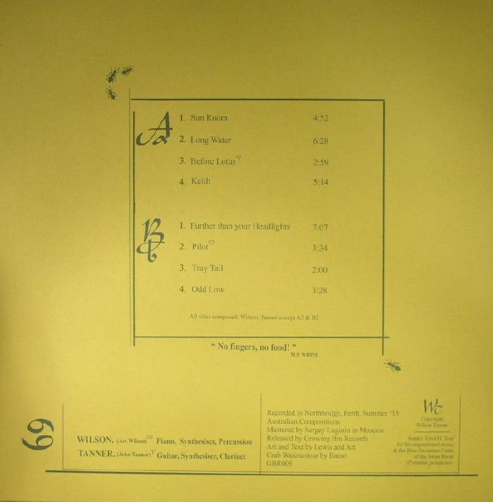 Employing an innovative alfresco recording technique, Andy and John invited members of the local animal community to join their jam sessions, saving a Blue Swimmer Crab from the flames of the barbecue and encouraging him to claw the ivories. Drop the needle and drift away on the distant ocean of “Pilot”, freefall into the soothing ambience of ‘Further Than Your Headlights’, and let “Sun Room” guide you gently back to terra firma. The dream team of Australian musicians (not to mention a very talented crustacean), come together on one vinyl – and it’s better than you could possibly imagine.