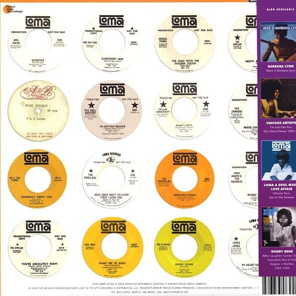 The four volumes of Loma: A Soul Music Love Affair are the result of several years of in-depth research into the Loma vault. This first installment concerns itself with the category that has made Loma such a celebrated imprint to fans: Northern soul aimed strictly at the dancefloor. Acknowledged floor-fillers like Ben Aiken’s “Satisfied” and Ike & Tina Turner’s “Somebody (Somewhere) Needs You” nestle with sought-after rarities by The Soul Shakers, Marvellos, and Voice Box. There are classics from The Olympics and Apollas, overlooked gems by The Jammers and Paul Days, an unissued stomper from Bobby Freeman, and the legendarily withdrawn single by Bob & Earl.