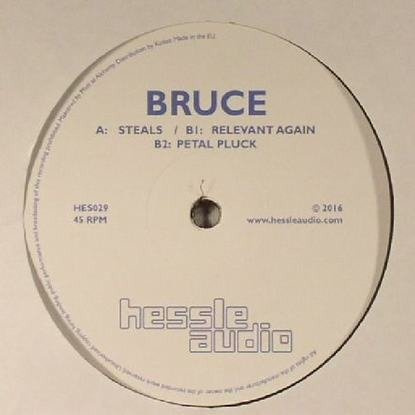 First surfacing in impressive fashion with two heavyweight records for Hessle Audio and Livity Sound offshoot Dnuos Ytivil in 2014, Bruce has been carefully considered in his output since then with just the odd remix here and there. It is Hessle Audio that signals his return, issuing the highly sought after "Steals" which has been burning a hole of expectation in the internet for the past six month. Naturally, "Steals" hogs the A-side, peppering a moody post-bruk, tribal-minded groove with distorted electronics for the pleasingly percussive opener. He explores deeper pastures on "Relevant Again", fusing fevered electronics and exotic sound effects with a dub-wise, hip-hop tempo groove. A fine EP concludes with "Petal Pluck", an ambient/IDM excursion that puts a contemporary spin on mid 1990s Aphex Twin.