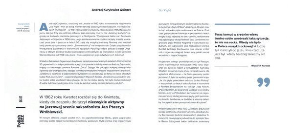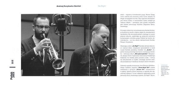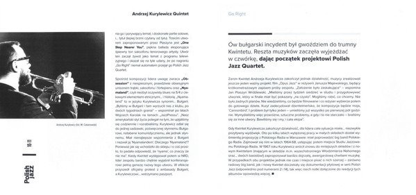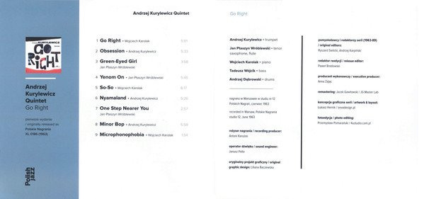 Takiej edycji płyty „Go Right” Kwintetu Andrzeja Kurylewicza jeszcze nie było! Album został wznowiony przez Polskie Nagrania w ekskluzywnej reedycji kultowej serii Polish Jazz, znanej fanom polskiej muzyki jazzowej od lat 60. Dla fana polskiego jazzu „Go Right” Kwintetu Andrzeja Kurylewicza jest wydawnictwem tak samo znaczącym, jak wydana pod nr XL 001 VII Symfonia Beethovena (pod batutą Witolda Rowickiego) dla sympatyka klasyki i pełnowymiarowy debiut Niebiesko-Czarnych dla miłośnika big-beatu. Mamy bowiem do czynienia z płytą pionierską. Podczas gdy podobne formacje w Polsce mogły liczyć jedynie na wydanie czwórki, lub na udział w Kronikach festiwalowych Jazz Jamboree, Kwintet Kurylewicza nagrał pierwszą w Polsce jazzową płytę długogrającą. Sukces tego wydawnictwa zapoczątkował legendarną już dziś serię wydawniczą Polskich Nagrań – Polish Jazz.