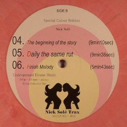 1LP!180 g , marble vinyl in unprinted Translucent PP/PVC Sleeve! Nick Sole , know for his previous releases on Mojuba and Fauxpas restarts his very own label plattform with a brand new album like series called “Private Collection One” . 46 Minutes of music ins his typical mesmerizing and capturing very own private House Rhythms, a 4/4 paced array carpet of tones and effects that are hypnotic and bpitched around 120 BPM wit ha focus on fantastic SOUND and High Quality Production. For Vinyl Fans the extra Bonus is 180 G and marbled Vinyl.