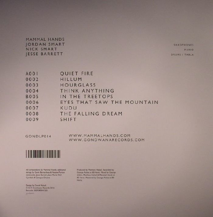 Mammal Hands are a trio of like-minded musicians: Nick Smart piano, Jesse Barrett drums and tabla, and Jordan Smart saxophones. Floa is their second album for Gondwana Records and in the 18 months since their debut, Animalia, they have carved out a growing following both here and abroad for their hypnotic fusion of jazz, folk and electronica: winning fans from Bonobo and Gilles Peterson to Jamie Cullum. Check! andmark live performances have included shows at King's Place in London and the RNCM in Manchester, as well as a barn-storming debut at the Montreal Jazz Festival. Drawing on a rich well of influences from Sufi and shamanic African trance music, Irish and Eastern European folk music, to Steve Reich and Philip Glass and more contemporary electronica influences, their music is built around deceptively simple sounding ideas that are lent power through the use of repetition and rhythmic loops. They have been compared to both Portico Quartet and GoGo Penguin for the way in which they navigate the choppy waters between contemporary dance music and jazz.