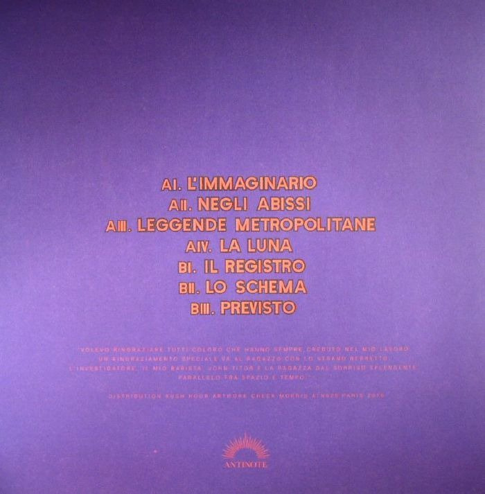 Electro kicks, raw textures, ominous choirs: L’ immaginario, Previsto’s opening track, ties a bound between Martelli’s two releases on Antinote, giving us one last glimpse at the uninhabited post-apocalyptic landscapes drawn in Menti Singole. However, this time Leonardo Martelli explores a more urban universe, as the use of rap samples on Negli abissi and Lo Schema suggests. Martelli exploits their aggressiveness in a way that somehow reminds us of minimalist rap tapes from Memphis. The third track’s title makes it even clearer: called Leggende Metropolitane, the song is a trip into the darkest blind alleys of the city, an invitation to wander among human wastes, driven by its light kick. La Luna, is the most contemplative moment of the album, offering us a meditative break before the nightmarish Il registro, Martelli’s brutal come-back to raw electro with a tune which depicts us a hellish engine room for expiating souls. Finally, the record concludes with Previsto, a haunted title track, filled with wailings that give us to contemplate a cruel vision of the urban misery we’re stuck in.
