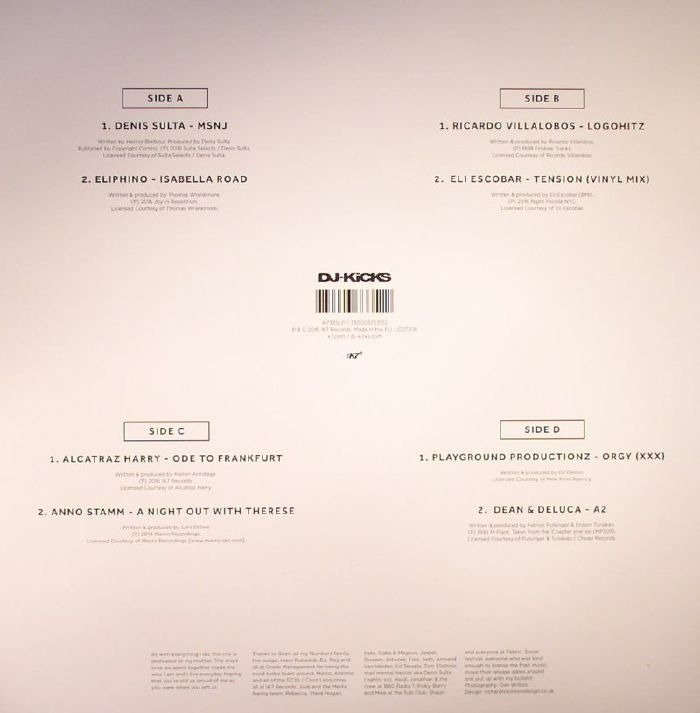 Up next on DJ Kicks' acclaimed mix series is Numbers doyen and Glaswegian icon Jackmaster. In his own words, the 24-track mix sees the charismatic Scot 'delivering an honest journey, unearthing a serious passion for the obscure boundaries of house and techno.' This double LP lifts out eight of the tracks most other DJs will want to get their mitts on, and joins the dots between his hometown of Glasgow with Denis Sulta's festival destroying bass driven epic "MSNJ", then NYC; with Eli Escobar's gutsy EBM-flavoured 'Tension (vinyl mix)". Berlin's status as a dance music mecca is referenced with Dutch transplant Anno Stamm's dark house stomper "A Night Out With Therese" and the legend himself Ricardo Villalobos, with his minimal techno classic from 1996 "Logohitz". DJ Kicks throw in a CD of the mix too!