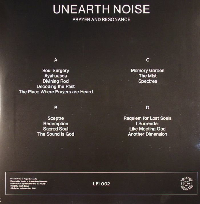 Double LP of new material from New Jersey musician, Unearth Noise. The album compiles selected compositions made over the last three years. As a kid Roger Berkowitz was inspired by the celestial sounds of Ravi Shankar’s strings, an album that was introduced to him by his father who was an engineer for RCA. In his youth he played in various punk bands and dabbled in experimental music after being exposed to the likes of John Cage, Harry Partch, Brian Eno and Mahavishnu.