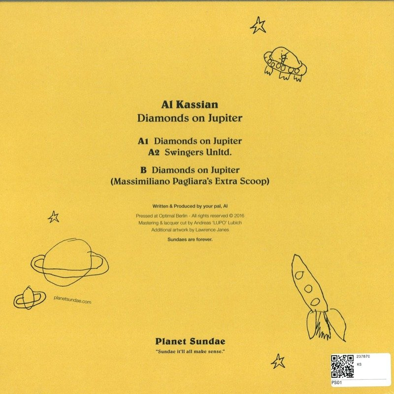 The glittering stars were cast scattered across the chaos of the blackened night sky. They shone like diamonds with their light leaving a dusty brush amidst the shadow of distant planets. The depths of outer space were gloomy and harsh, the cogs of jupiter chuntered with a metallic grind. Diamonds on Jupiter eh? Who would have though it? Planet Sundae is a new vinyl only record label emerging from London. On their debut release they have lured in the music of Al Kassian who has delivered two tracks of dancefloor orientated house music with a melodic edge. The release also fetures a remix from Massimiliano Pagliara.
