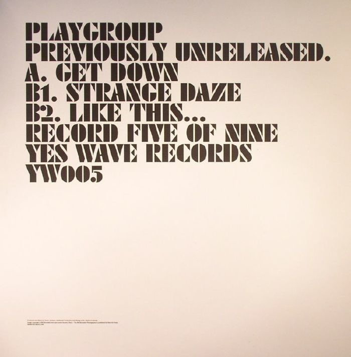 As we cross the midway point of the nine part Previously Unreleased series from Playgroup it is becoming clear Trevor Jackson's archive of work under the name is high-grade quality and seemingly bottomless. Up top, "Get Down" is a serious sidewinder that feels like Jackson is pulling from techno, electro and the Metal Dance of Liasions Dangereuses et al. What a bassline! On the B-side, "Strange Daze" provides a softer, loungey kind of Balearic house vibe, whilst "Like This..." could be feasibly be seen as a studio offcut from the same sessions that brought us Playgroup classic "Number One." Here Jackson throws down a rather satisfying, funk-added slap bass line augmented by a slower yet full-bodied groove and some uncredited vocal grit. Excellent, like the rest of the series.