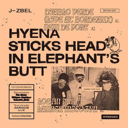 J-ZBEL is the artist behind the Brothers From Different Mothers label out of Lyon, responsible for that absolutely mental track "How I Made My Mom and Sis' Sexbot Slaves" and now presents Hyena Sticks Head In Elephant's Butt also contender for best 12" title of 2016. The music ain't all that bad either. On the A side "Diablo Verde (live At Bordeaux)" is a serving of classic early techno that you would honestly think was a lost tape from the '90s in the vein of early Underground Resistance or Plus 8. "Nem De Porc" goes for a weird junglist flavour that's equally retro leaning. On the flip "Lauren Mysogyn" hammers the message home on this brutalist gabber stomper that absolutely blows the doors off.