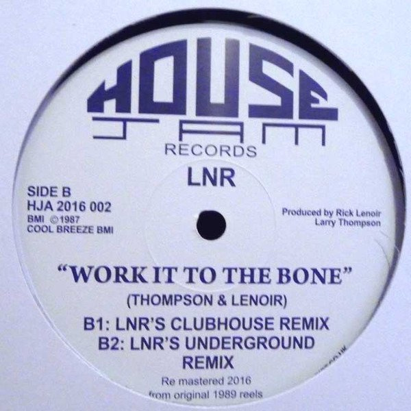 What can be said about LNR’s “Work it to the bone"? Another slamming piece of Chicago House history brought to us by the dynamic duo of Larry Thompson and Rick Lenoir (LNR - Larry N’ Rick) of the cult House Jam label. This is some straight 1987 HEAT, real House music for the heads, from the very beginning! “Work it to the bone” does exactly that, works every single part of your body into a frenzy, a cacophony of jacking sparse drum programming with that infamous descending bassline and that dude chanting, asking us to join him “C’mon let’s work!” This record is a total classic. Period. Featured on this official 2016 reissue we have 4 mixes of this monolithic slab of machine funk that originally came out on various pressing between 1987 - 1989: The vocal mix, the instrumental, LNR clubhouse remix and the LNR underground mix. n a sense, this is “the complete” collection of this cornerstone of Chicago House. The full set. All audio has been lifted from Rick Lenoir’s private collection of reel to reel tapes from his basement and remastered accordingly. This reissue has been realised with the full involvement of Thompson & Lenoir and is 100% legit! Don’t snooze, this one deserves a spot in any self respecting House heads record bag or DJ set, classic material made available again for 2016 - House is going on!