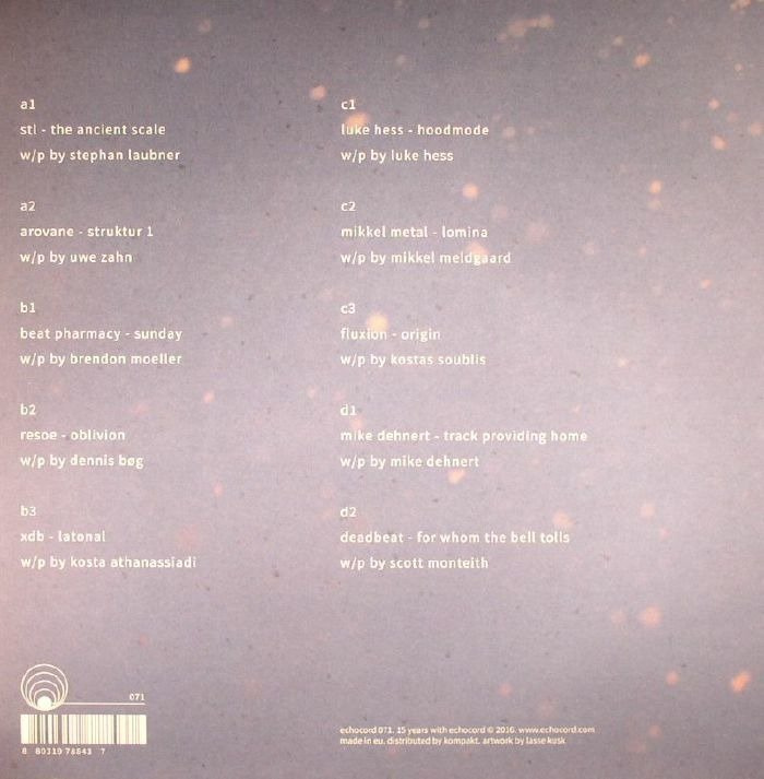 The Danish label Echocord Records was formed 15 years ago this year by Kenneth Christiansen. It will now be celebrated with a compilation plus a big tour around it. We are super happy and proud that we can still continue releasing quality electronic music. The compilation contains 10 tracks from 10 artists that all have been releasing on Echocord and Echocord Colour before from veterans Mikkel Metal, Deadbeat, Fluxion to newer signed artist Arovane. All tracks are new and unreleased. “15 Years With Echocord” covers the typical Echocord sound. From ambinet/chillout by STL, stoned dub by Beat Pharmacy, to typical Dub-Techno and House from Fluxion, Resoe and XDB, to the more dancefloor peak tracks by Mike Dehnert and Deadbeat. Lets do another 15 years .