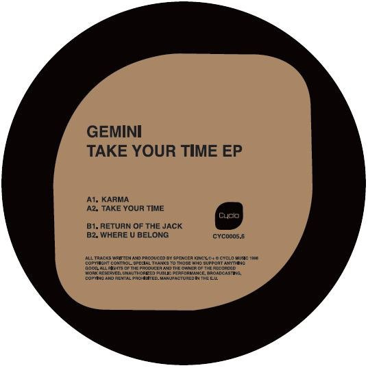 First vinyl re-issue on Cyclo Records since 1999 ‘’Take Your Time EP'’ confirms Gemini’s status as one one of Chicago’s most remarkable and prolific House producer of the 90s. Gemini’s music wavers between minimal Techno and old school Chicago House but always with a deep feel to it. Retro funk-tech grooves (Karma, Return of the Jack) or obsessive, beats and bass driven vocals (Take Your Time, Where U Belong), you have the essence of Gemini’s work in these 4 gems.