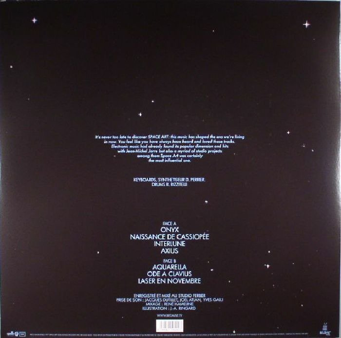 1LP in Cardborad Sleeve + CD included + Poster LP reissues cut from the long-awaited 2010 digital remasters for the first time on Vinyl and CD, Original release from 1977 ” Reissues of a legendary artist, pioneer of the French electronic music. ” The French proto-electro is making a come-back as we’ve seen it with the success of both Cosmic Machine compilations. ” Their 7″ “Onyx” sold over 3 million copies worldwide. ” Space Art is behind the massive hits: “Onyx", “Give Me Love", “Love In C Minor” and more ” One of half of the band, Dominique Perrier, is one of legend Jean-Michel Jarre’s closest collaborators. Recognized as a keyboard virtuoso, he worked on all Jarre’s albums from “Rendez-Vous” (1986)to “Oxygène 7-1″ (1997) and still tours with him around the world. Space Art also toured with him in China in the early ’80s. ” Alongside Jean-Michel Jarre and Cerrone they are one of the most influential bands that pioneered electro music.