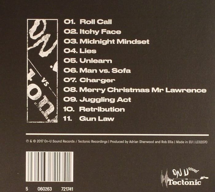 From the jittery funk of “Roll Call” to the industrial drone of “Charger”, the percussive energy of “Juggling Act” to the cosmic wisdom of the Lee Perry voiced “Lies”, the furious synth-grime of “Gun Law” to a languid cover of Ryuichi Sakamoto’s “Merry Christmas Mr Lawrence”, this is a diverse yet cohesive work, the two producer’s ability to blend and subvert each other’s signature sounds more fully realised than ever before. Once again a collaborative release between the two seminal and much-loved labels the artists respectively run, On-U Sound and Tectonic, this is an album tooled equally for the dancefloor and home listening, the bodyblow of the sound system stack and the intimacy of headphone meditation.