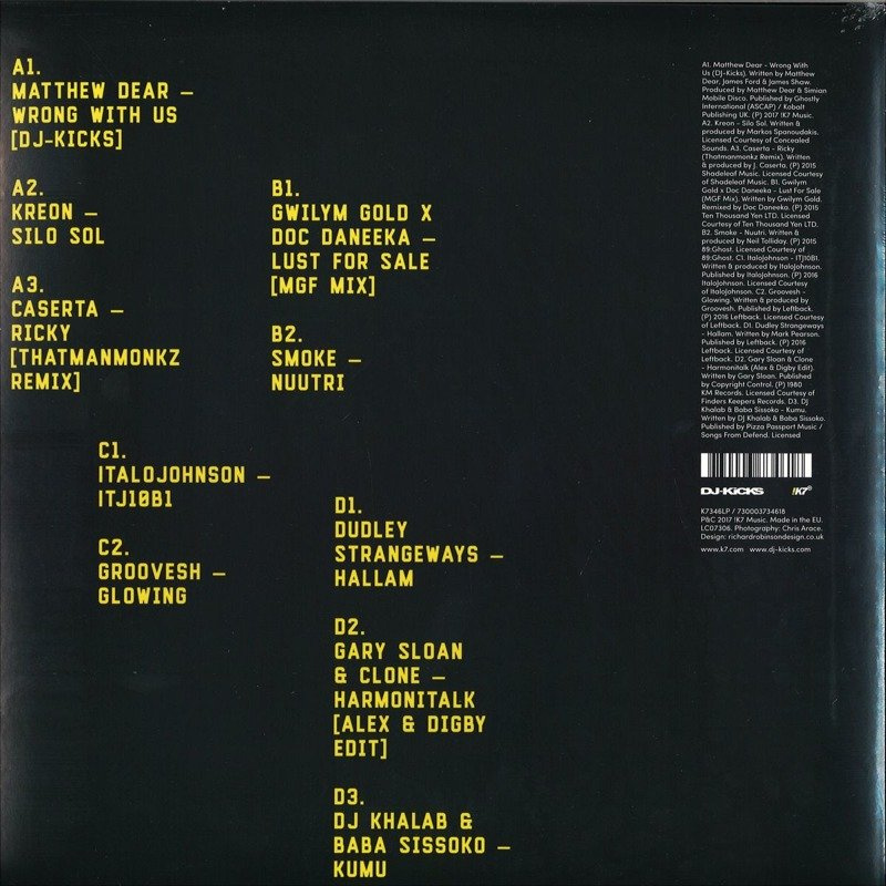 The long established and critically acclaimed DJ-Kicks series kicks off 2017 with suitably accomplished DJ, producer, vocalist and instrumentalist Matthew Dear at the helm.A man of many musical hats, Texas born, Detroit raised Dear has a wide reaching discography that takes in face melting techno as Jabberjaw, dark avant-pop under his own name and intricate minimal as Audion.Often with a gothic slant and full of curiousness, his pensive but playful music is an intoxicating distillation of many different influences, often withhis own stylised vocals at the centre.