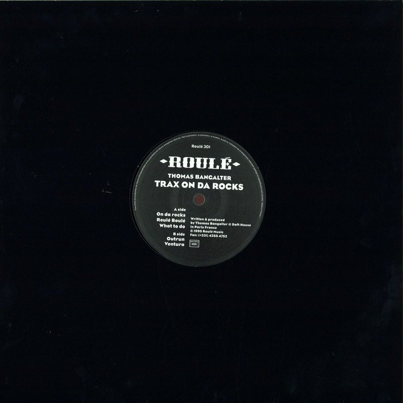 Essential repress! Tomas Bangalter's stone cold classic Roule 12" Trax On Da Rocks makes a return. The five tracks on offer - "On Da Rocks", "Roule Boule", "What To Do", "Outrun" and "Ventura" - have acquired legendary status, standing as sublime examples of the rough, raw end of the filter-soaked French house sound. Some 17 years since they were first released, these tracks have lost none of their madcap brilliance; if this isn't already a cherished part of your record collection, here's your chance.