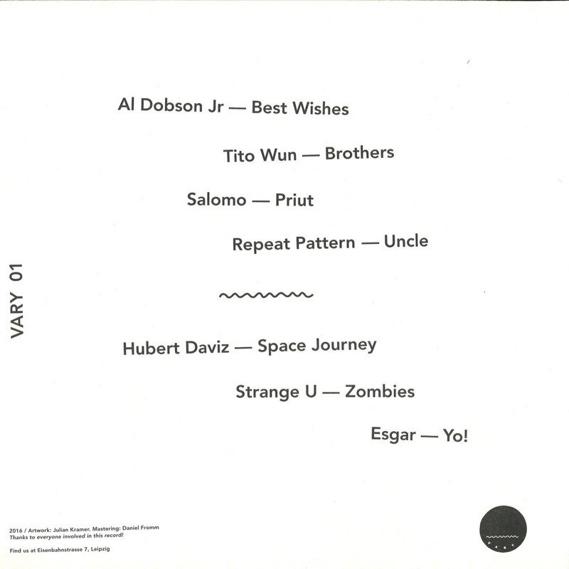 After numerous parties, concerts and one year of running a local record shop in Leipzig, the VARY crew releases its first vinyl release. The record features long time friends Al Dobson Jr, Tito Wun, Salomo, Repeat Pattern, Hubert Daviz, Strange U and Esgar.