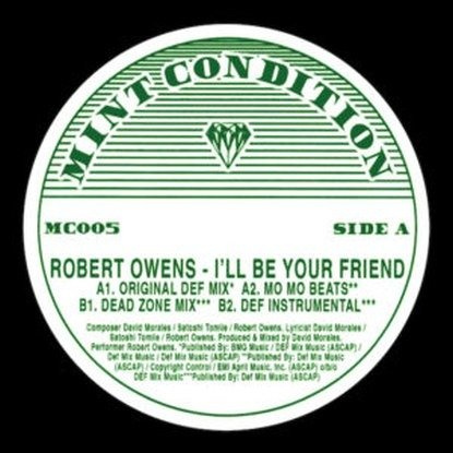 Mint Condition - A brand new record label focussed on excavating the outer fringes of classic House and Techno. Unreleased mixes, classics and overlooked gems mined from the last 20+ of contemporary dance music are the order of the day. From Chicago, Detroit and New York to London and beyond, Mint Condition have got their expert digging hats on to bring you exclusive heat and those rarer than rare jams that have been on your wants list for years! Dig in…. The word ‘classic’ get’s bandied around a lot when talking about certain records, artists, labels etc but rarely is it truly justified. In the case of the monumental slab of NYC deepness that is ‘I’ll Be Your Friend’ we feel the tag is genuinely justified. Originally released in 1991 on the RCA label the track has been one of house music’s most enduring anthems. Literally one of the deepest tracks out there, it’s combination of Owen’s vocals paired with the stellar production techniques of Def Mix’s David Morales (and THOSE drums) is such a heady combination that the record crossed over so many scenes and to this day remains an evergreen staple in DJ’s of all persuasions bags. Featured here we have all the original mixes (with the exception of the shorter radio edit) in their original forms. The record sounds as fresh as it ever did, the sort of track that never dates and will always fit into a set, the very definition of a classic. Legitimately re-released with the full involvement of RCA records for 2017 and remastered from the original sources specially for Mint Condition by London’s very own Curvepusher. 100% legit, licensed and released. Dug, remastered, repackaged and brought to you by the caring folks at your new favourite reissue label - Mint Condition!.