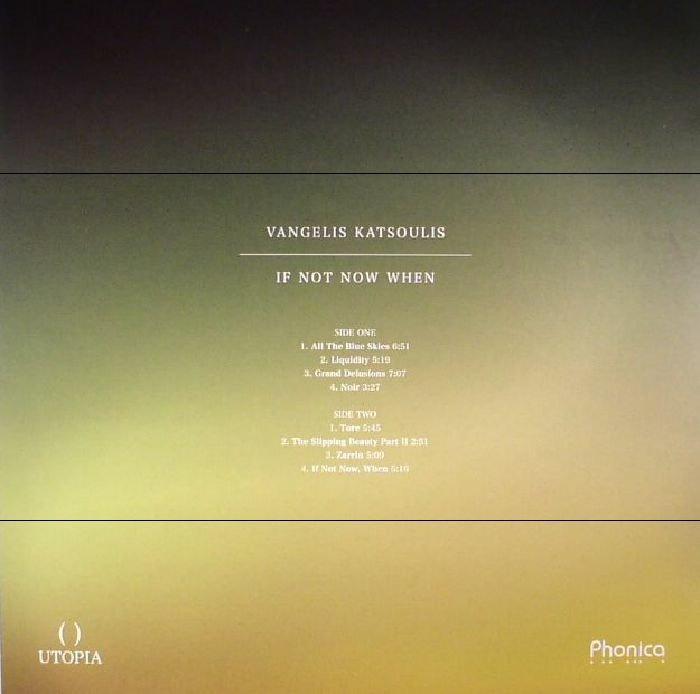 Today, he is striving for simplicity, trying to express the most, using the least, providing the context for this release. From the subtle ambience of title track “If Not Now When”, to the intense and confronting sound on “All The Blue Skies”, Katsoulis and his accompanying musicians deliver a diverse and contemporary work with a level of sophistication that will challenge the current electronic musical landscape. The purity of sound in stand out track ‘Tore’ is juxtaposed by the dark and gritty “Grand Delusions”, a remarkably modern composition which sounds like it has been composed for a Berlin Techno club, from a man we suspect has never been to one. ‘Slipping Beauties’, the most revered of Katsoulis’ back catalogue (recently remixed by Young Marco) is given an organic and intelligent reinterpretation for 2016. The haunting and provocative vocal performance by Anna Linardou on ‘Zarrin’ leads the record down an even more emotive and provocative path.
