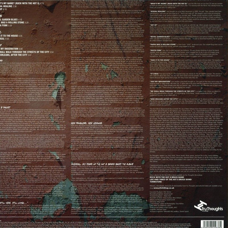 New Orleans' Hot 8 Brass Band toast their 20th Anniversary in typical roof-raising style, with a series of releases and live dates to celebrate this significant and incredibly hard-won milestone. At the centre is 'Vicennial - 20 Years Of The Hot 8 Brass Band', a special album mixing brand new tracks with newly recorded classic Hot 8 material, this jubilant LP finds the band on the form of their lives. Across three albums - 2007's 'Rock With The Hot 8', 2012's Grammy-nominated 'The Life & Times Of ...' and 2013's 'Tombstone' - with a host of standout singles, including their iconic version of "Sexual Healing" alongside several other covers and equally impressive originals, Hot 8 Brass Band have told the story of their lives and their city like only they can. One of the great New Orleans acts, Hot 8 have pushed on through a barely imaginable series of trials. The devastation of Hurricane Katrina, the separate deaths of four of their band members, and the horror of trumpeter Terrell "Burger" Batiste losing his legs in a car crash, conspired to test these men almost to breaking point. They honour their fallen friends and help to work towards the future of their community by putting their energies into positive projects at home as well as touring as much as they can. They march together and they play their music - a rambunctious yet elegant and super-tight mix of jazz, funk and hip hop - not merely as though, but because their lives depend on it. The recording sessions for "Vicennial ..." saw Hot 8 Brass Band welcoming former members back into the studio, as well as featuring performances from family members of their fallen bandmates (from siblings through to grandparents), giving even more meaning and poignancy to each track, whether new or a revision of one of their classics. Across the album, the vibrant new recordings capture the spirit of a community and make a strong statement of the band's longevity, vitality and constant progress.