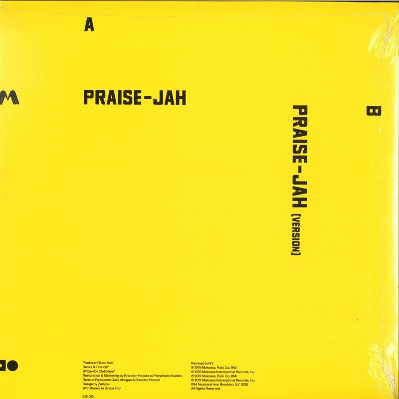 Oluko Imo was a Trinidadian born multi-instrumentalist, founder of the legendary spiritual afro jazz groups Mansa Musa and the Black Truth Rhythm Band. He moved to New York City in the 80s and divided his time between teaching music there and touring Africa with Fela Kuti as both his manager and part of the band. Praise Jah is Imo’s crowning achievement. An elevated electronic mantra that perfectly fuses synthy soca disco with his spiritual afro-Trinidadian leanings. It’s a timeless piece of music that sounds as visionary today as it did when it emerged from the aether back in 1979. Limited pressing with embossed sleeve, designed by Zeitype.