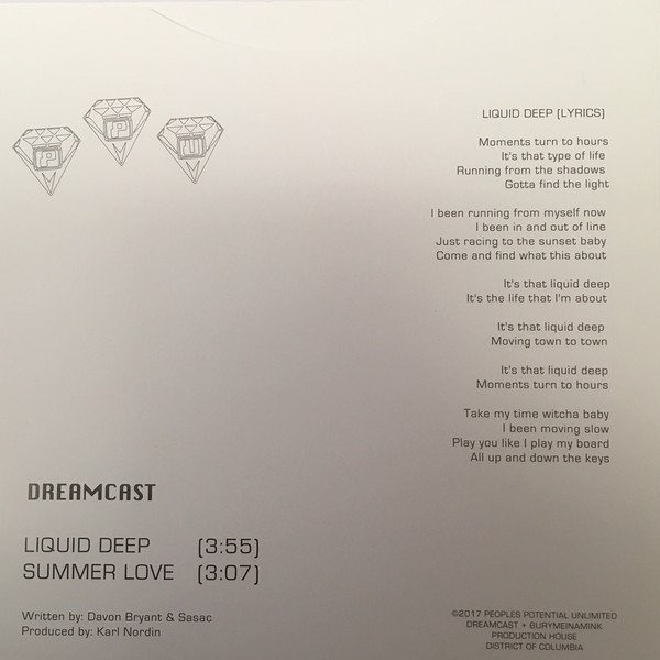 More quality grooves from Washington DC label specializing in reissuing obscure and unknown 70s and 80s dance music. This time around is Dreamcast who are Davon Bryant in conjunction with Swedish guy Sasac aka King Al. "Liquid Deep" is sexy late night deep funk the way it was always intended and Bryant's smooth as silk vocals are just like... Wow! So with Dreamcast on the vocals and Sasac on the beat, we are hoping there's more things on the way from this trans coastal duo in 2017.