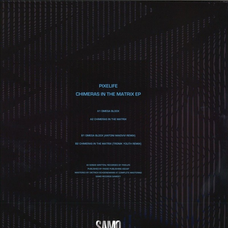 Newly launced Samo Records is setting out to explore the depths of the dancefloor by celebrating the darker, moodier facets of electronic music. The NYC label's first release comes from Pixelife (Sean Dack), a highly accomplished visual artist and veteran of NYC's underground. In addition to releasing on such respected labels as Throne of Blood, Horn Wax, and Let's Play House, he also makes up half of GHOST COP, a band known for its textured synths, iconic vocals, dissonant beats, and captivating live sets. Incorporating the same expert sonic-layering techniques he employs in his live analog sets, he's created a dynamic EP that's both intimate in feel and broad in scope. "Omega Block" stomps out of the gate, all driving rhythms and throbbing basslines with an underlying element of frenetic foreboding -- aptly reflecting these geopolitically tense times, while still remaining suitable for losing yourself on the dancefloor. The track gets the remix treatment by Bristol, U.K.-born, Berlin-based Antoni Maiovvi, a self-described "electrodisco horror mindmelt DJ/live performer/film composer" who heads up Giallo Disco Records with Vercetti Technicolor. Here, he trades his trademark horror elements for successions of staccato beats and a stripped-down sensibility that successfully translates to perfect late-night-at-a-warehouse vibes. "Chimeras in the Matrix" soars with gorgeous dystopian melodies overlaying squelchy undertones, revealing labyrinthine layers and anxious crescendos before building to a full-on acid frenzy. Producer/remixer/DJ Tronik Youth (who, like Maiovvi, also hails from the U.K. and currently lives in Berlin) is co-head of the prolific (averaging nearly a release a week in 2016) NEIN Records, which he founded five years ago with Ian Considine; the label has released music from the likes of Rodion, Curses, In Flagranti, Heretic, Man Power, Daniele Baldelli, The Emperor Machine, and Moscoman, to name but a few. He is also a member of Permanent Wave, a spooky, pitched-down, dark-wave-inspired disco project with French singer Justine. He brings a chuggy, bleepy edge to his take on "Chimeras in the Matrix" with bouncy rhythms, multiple breakdowns, and echoing robo-vocals, taking the original's intensity down while upping the dancefloor quotient. Stay tuned to big things to come from Samo Records in 2017...