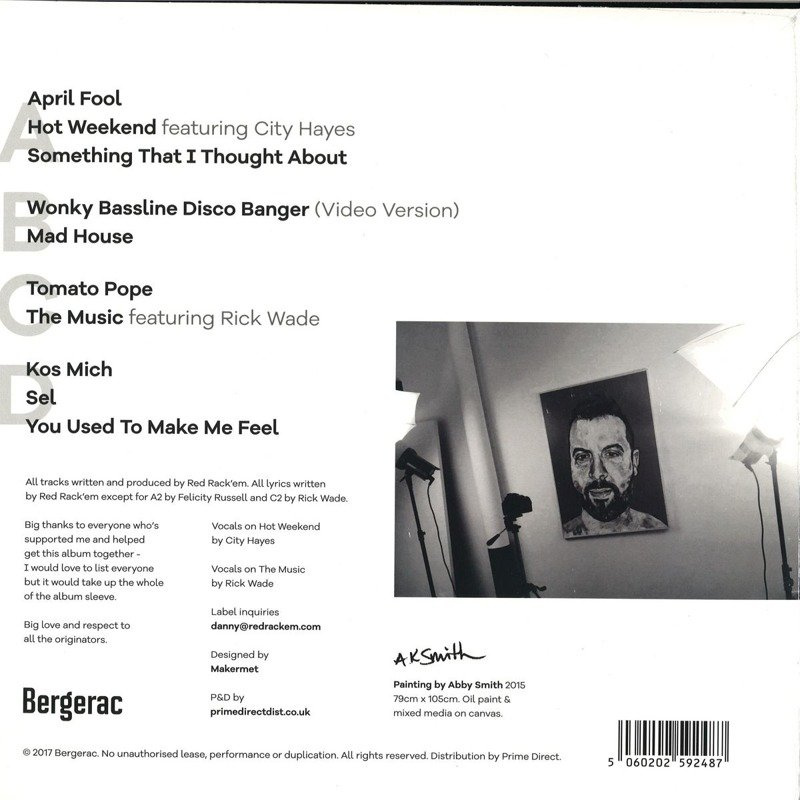 2016 was a huge year for Red Rack'em with his smash hit 'Wonky Bassline Disco Banger' being hammered by just about everybody all over the place.It's been one of the biggest tracks of the year so far in the underground scene with The Black Madonna professing it as her 'track for the summer' on Pete Tongs Miami special on Radio 1 and a whole host of other DJs (including MCDE, Mr Scruff, Mano Le Tough and Detroit Swindle) jumping on board it's cracked out and super fresh take on disco house.Wonky Bassline is the culmination of a producer spending years honing his craft and while the world was justifiably going crazy to it, Danny Berman was quietly putting the final touches to his first 'proper' Red Rack'em artist album, which is aptly titled 'Self Portrait'.Released on his own label Bergerac 'to retain complete creative freedom', the album is a super personal journey through the many facets of house, disco and club music that Berman has explored in his 22 years as a DJ and 10 years of releases for Philomena, Ramp, Phonica, Wolf Music, City Fly and of course on his own labels Bergerac and Nettles.Focussing on sample heavy, off kilter yet danceable grooves, it's an extended trip through the mind of a true auteur who truly has his own unique perspective of what house music should sound like and how it should function in the club.Berman says that he was working on the album over a period of 'at least 4 years' and the music has been specially selected from 'stacks of tracks' so rest assured only the best has made the cut. The artwork comes from an old high school friend Abby Smith who got in touch with Danny via Facebook and asked if she could paint him. As it was the first contact they had had for many years, it seemed like fate and created the album concept - a true musical self portrait.The album opens with 'April Fool', an optimistic, sweet jam with a sun drenched halcyon feel. Super emotional and built for those eyes closed moments on the dancefloor.'Hot Weekend' features NZ ice queen City Hayes on vocals - this is a full on Detroit influenced monster with a rolling breakbeat and vintage Planet E/Recloose vibes. Hayes sings of debauched times while the music simultaneously peaks out on a UPS. Big!'Something That I Thought About ' shows Bermans thoughtful side. Super deep yet driving with a slightly melodic techno feel. 'I want you to show me how to love you every day''Wonky Bassline Disco Banger' is present here in its full form but comes with a brand new intro constructed from a fan video. A monster of a track which drops again and again - Danny shows us just how far you can stretch the disco house formula to explore new heights.Side B closes with 'Mad House' which is a super sinister, garage influenced warehouse banger designed to wreck the discotheque. Sinister rolling hi hats and held notes build the tension while offbeat snares and staccato bass slap the listener round the head.'Tomato Pope' is another biggie which harks back to the Africanism days with its North African influenced sound. Huge swinging beats, a system testing bassline and dubby delays make for an almighty party smasher which is sure to see plenty of play. Tomato Pope indeed.... Several years ago Red Rack'em interviewed Detroit legend Rick Wade on his much loved Smugglers Inn Radio show. During the interview, Rick reminisced about his teenage years listening to music and imagining how he could present this fascinated feeling to other people in a club context. The rest is history for Rick and it's the inspiration for 'The Music'. As well as featuring Ricks spoken words on the track it's a heads down Deep House number which is not a million miles away from some of the early Rick Wade tracks which influenced Berman. Cosmic disco house anthem alert...'Kos Mich' is a track which Rack'em has been testing out at gigs over the last couple of years and it's also had quite a lot of other labels requesting to release it as well. But thankfully, it's place on the album is safe. This is another big club track with that elusive deep yet big room feel. Kos Mich baby! Things slow down a touch with 'Sel' but the club wrecking ball potential remains. This is Danny demonstrating his well-rehearsed beat down skills with a super swampy, bluesy hoe down of a track which is already picking up a lot of attention from recent club plays. More of a slow BANG than a slow Jam. 'You Used To Make Me Feel' closes the album with an off the wall dissection of why some people choose to have sex. 'I like to do it to unwind' professes Berman while the beats skitter and scatter before resolving into something resembling a normal beat.