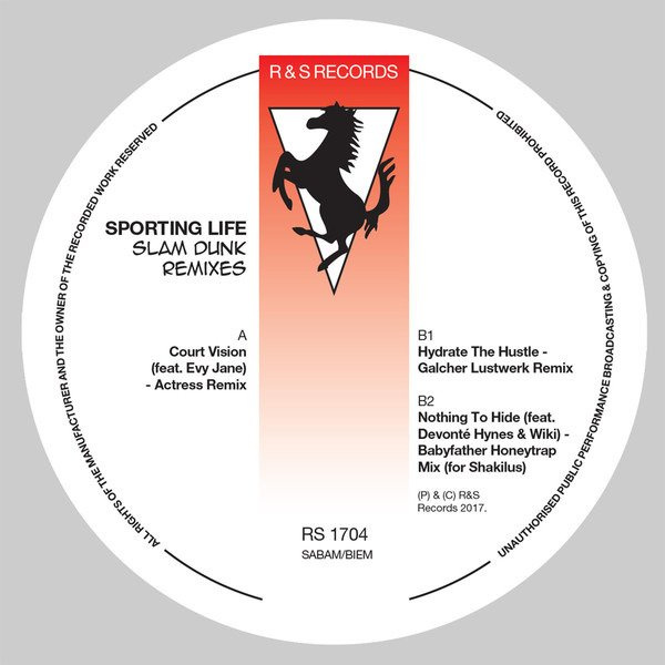 R&S Records present the three remixes from Sporting Life's Slam Dunk series pressed to one slab of wax. These remixes all came from Sporting Life's friends and contemporaries. Actress turns in a stunning, typically deconstructed remix of Court Vision (feat Evy Jane) - alternating between using the full vocal, the mood is one of melancholic hauntology. Galcher Lustwork comes correct with a tripped out, euphoric house reworking of 'Hydrate...' peeling back the complexity of the original for a straight jack that oozes class. Finally arch beat provocateur Dean Blunt provides a suitably oddball take with his 'Babyfather Honeytrap mix (for Shakilus) final VIP' - If you've heard the amazing Babyfather album or mixtape you know what to expect here.