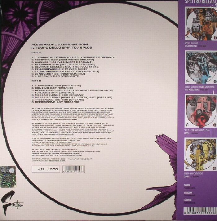 LP, 180 grams black vinyl 500 hand numbered copies The label is called SPETTRO (the word has two meanings in Italian, it means “spectrum” but also “ghost”) and the releases will be split in two series : SPETTRO LIBRARY and SPETTRO SOUNDTRACK - this is SPETTRO LIBRARY! TRACKLIST: A1. Il Tempo Dello Spirito 2:25 A2. Festività 2:00 A3. Giubileo 1:50 A4. Ave Maria 2:32 A5. Gloria In Excelsis Deo 1:52 A6. Pellegrinaggio 2:17 A7. Salmo Gregoriano 2:00 A8. Le Novizie 1:36 A9. Il Peccato 2:25 B1. Elevazione 1:50 B2. Concilio 2:37 B3. Black Allelujah 2:31 B4. Funzione 2:14 B5. Messa Solenne 3:05 B6. Messa Solenne (Vers. Raccolta) 2:27 B7. Presenza Di Dio 1:25 B8. Deposizione 1:57 Amongst the first bunch of this new label releases, we couldn’t miss a tribute to one of the greatest masters of libraries recordings, Alessandro Alessandroni, born in 1925. In his long career Alessandroni has published lots of soundtracks - and we mean lots of - and for this he’s considered a real star of Italian music. As a friend, and close collaborator of Ennio Morricone, he’s remembered as “the whistle man” for his fundamental contribution to the immortal scores of Sergio Leone’s movies. His class allowed him to range between genres and atmospheres, from beat to avant-garde, from funky to abstract compositions, always reaching and keeping the highest quality. This is immediately clear in “Il Tempo Dello Spirito", originally published in 1971 for the meritorious Flirt label. It’s an album full of sacred music, gospel and spiritual, yet capable of personal flashes that make it interesting, particular and unique. Simple church songs? In some cases it may seems so - titles as Ave Maria, Gloria In Excelsis Deo, Pellegrinaggio or Messa Solenne do not leave much room for doubt and interpretations - but Alessandroni is able to astonish even in extreme cases like this. The best comes with songs like Il Peccat ...