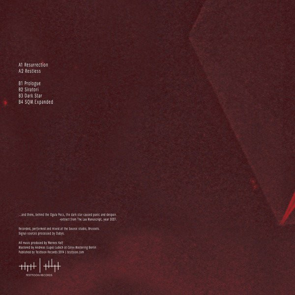 Beautiful advanced electronix tracks in the new Testtoon release! Oubys's SQM part II is 1 half of the SQM album release split into two parts. Part 1 saw the light in June 2014, and was equally stunning. Stylistically on the same plan, SQM Part II again delves into abstracted melodic and harmonic grandiosity, counterpointed with integrated blurbs of noise and static. Oubys has a fearless and often unattached approach to composition and sound. Although there's definite references to the claustrophobia of dark science fiction and his approach to melody hints at an inspiration beyond electronic music, his music stands firmly on its own and shuns every sense of political correctness. SQM Part II shares the same futuristic feeling as its first installment. A throbbing undercurrent defines its tracks and gives them structure, a structure that is just as easily abandoned in favor of of noise and harmonic exploration. Great listening trip! (comes in an small edition, so won't be in stock forever!)