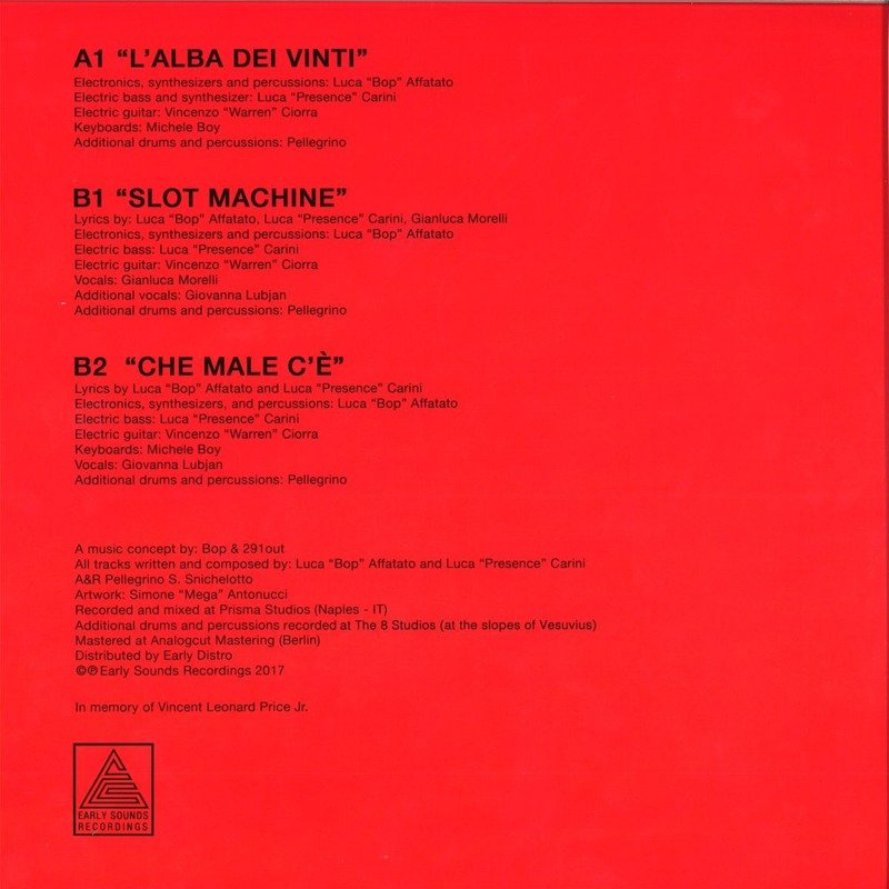 A soundtrack for the contemporary "Vinti" (defeated) with its dark and at the same time sparkling flavor of the '80s sounds between cold wave, synth pop and imaginary electronic atmospheres. This record with its horror-framed and distopic scenario ("Slot Machine") reveals a content of social criticism healed through the warm and evocative indulgence of "Che Male C’e”.
