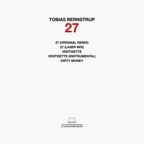Tobias Bernstrup is a contemporary musician and video artist born 1970 in Gothenburg, Sweden. He received an MFA from Royal College University of Fine Arts Stockholm in 1998. Using the visual language of pop culture, video games, sci-fi, classicism and gothic noir, he has created a stage persona with notorious live performances. Dressed in elaborate costumes of skin-tight rubber suits and fetish gear, Tobias' external appearance is androgynous. He raises questions about representation of identity, the body and physical space in both virtual and non-virtual realities. Between 1997 and 1998 he self-released two limited CD-R EPs. In 2002 his debut album 'Re-Animate Me' was released by Tonight Records followed by two limited 12' singles for the song 27' and the Italian version Ventisette'. . 27' is a 5-song EP collecting 4 different mixes of the title track plus one unreleased song from the 'Re-Animate Me' recording sessions. The material on this EP is closely connected with the world of computer games which Bernstrup also inhabits. Bernstrup's music is influenced by 1980s Italo disco and synth pop, reminiscent of Kraftwerk, Depeche Mode and Ken Lazlo. On the A-side is the original mix at 115 bpm followed by the Lazer Mix set to an faster beat and additional arpeggiations and heavier bass drum beats. Lyrically the song tells the story of a good looking 27-year old boy from a small town searching for love with any man who can spoil him. On the B-side are both the vocal and instrumental of Ventisette', the Italian translation of the song 27.' Both versions of Ventisette' are stripped back compared to the A-side but keep the melodies in tact. Also released for the first time ever is the demo Dirty Money' a Pet Shop Boys influenced song about male prostitutes ready for a night out working the streets. All songs have been remastered for vinyl by George Horn at Fantasy Studios. For the jacket Eloise Leigh transformed the original portrait of Tobias into a Warhol-like painted polaroid with a striking likeness to Liza Minelli with blue eye shadow and red lipstick. Each copy includes a photo postcard with lyrics and notes. I would rather create alternative routes to experiencing and understanding the world, understanding what it means to be human today,' says Bernstrup. We are more artificial than we want to admit.'