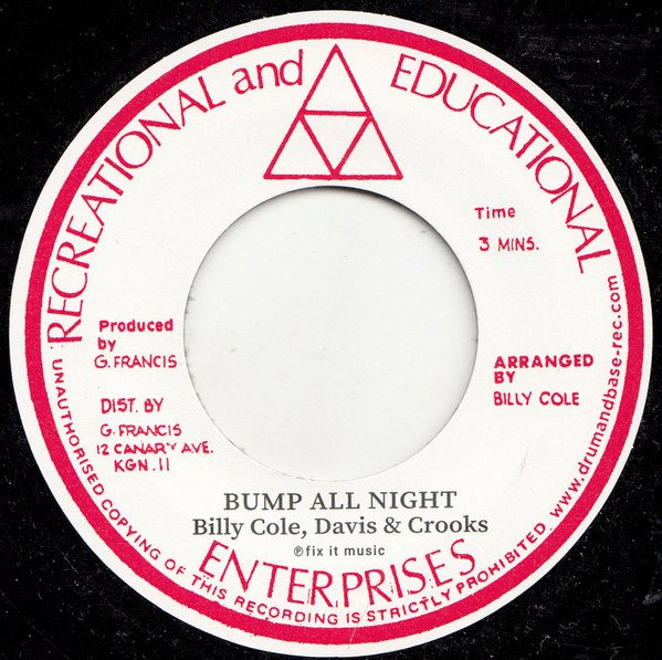 For contractual reasons, Jamaican soul singer turned composer, producer and arranger Winston Francis often worked under the alias "Billy Cole". In the 1970s, he released a string of fine singles and one album using the pseudonym, most of which have now become collector's items. "Bump All Night", a fine chunk of intergalactic Caribbean funk drenched in Clavinet lines and dub-delay, was first released in 1975 and features the hitherto unknown Davis & Crooks (believed to be Bobby Davis and David Crooks AKA Dave Barker). Francis goes solo on the flip side, lending his Nat King Cole meets Harry Nilsson style voice to the string-laden torch song "Woman". This was originally the title track of his sought-after album of the same name and has previously never been released on a "45".