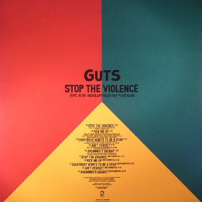 The unpredictable nature of life for a band with members scattered around the globe have forced Guts to give his line-up a shake to start their various tours in the best possible conditions. A Brand New Revolution! So Leron Thomas gave way to Wolfgang Volburn, who is also lead vocalist of The Ephemerals. Mary May climbed onto Lorine Chia's throne. Beat Assailant plucked a mic from the air that was still burning from the flow of Von Pea. While Florian Pellissier remains riveted to the keyboards, versatile Greg F. on the bass and Nico Rajao on drums, Guts has gobbled up the miles and bestrode stage after stage at the head of a revitalised live band. New recruits had kept enhancing the well-practised repertoire with their vibes, redefining some of the contours, adding a bit more soul here or a lightness of touch there. Their impact was so great, in fact, that changing line-ups have become part of the band's identity. Galvanized by this new alchemy, Guts and his new-look live band stopped off in the studio to compose and record some new tracks which he has brought together on "Stop the Violence", a five-track record that's more like a mini-album than a simple EP. High on this regenerating juice, energy levels spiking into the red, "Ain't Perfect", "Pick Me Up", "Everybody Wants to Be a Star", "Drummer's Delight" and the title track light up boxes marked soul, afro, disco and jazz, brighten a groove carpeted with retro-funky keyboards and the brass of Cotonete, Heavenly Sweetness's resident jazz-funk specialists. Two birds with one stone, since Guts and his live band will obviously use "Stop the Violence" to set the stage ablaze after burning up people's decks.