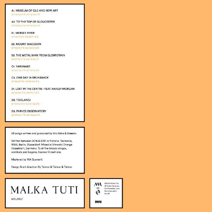 Malka Tuti continues to be a hotbed of oddball, outernational wares for adventurous dancefloors, and the Israeli label reaches a new milestone as it presents its first full-length album release. Die Orangen is a project headed up by prolific Australian artist Kris Baha alongside Angelo Cruzman and Dreems, and following a single on Malka Tuti last year they come good with an album of psych-out brilliance that should have a broad reach from Balearic heads to wave-minded disco dancers. "To The Top Of Gloucester" shows they're happy to embrace experimental moods as much as direct hitters, and the loose, live band approach to the music binds all the different styles together perfectly.