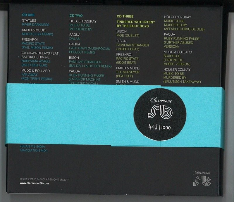 As he did to celebrate Claremont 56's fifth birthday, Paul "Mudd" Murphy has enlisted the help of the Idjut Boys to mark the passing of the label's first decade. This time round, the long-serving dub disco duo has put together a spellbinding, two-disc mix of specially commissioned material. Of course, they've gone to town, blending the label's 10th birthday tracks with oodles of dub delay, all manner of trippy effects, and a swathe of their own specially prepared dubs, DJ tools and re-edits. These intoxicating, mind altering versions are showcased in unmixed form on disc three, following two discs of horizontal Balearic bliss, slow-dance goodness and the impossible-to-pigeonhole antics of Can founder Holgar Czukay.