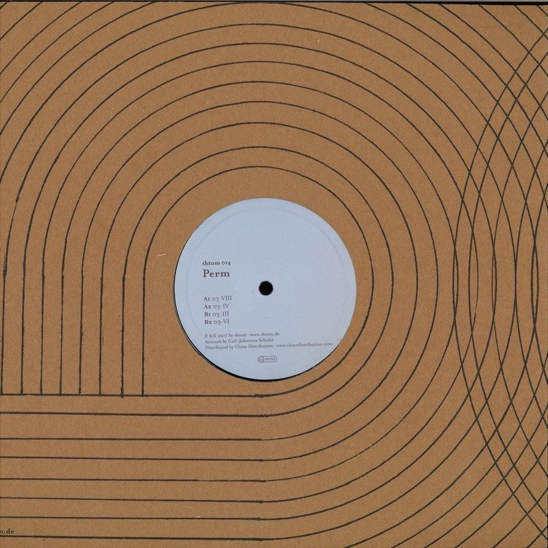 Once again, Perm has turned just the right knobs to give you the perfect soundtrack for your personal journey into Techno wonderland. The Leipzig based wizard simply knows how to leave dancers both dizzy and beatific. When those strings in "03-VIII" come together to its climax you're more than ready to embrace the night. The focus in "03-IV" is more heavy on the drum work with just the right amount of subtle tripping hazards. "03-III" builds and builds without ever bubbling over while the mighty "03-VIII" comes with a Boom-Tschak-Electro feel to it. The artwork comes courtesy of Carl-Johannes Schulze.