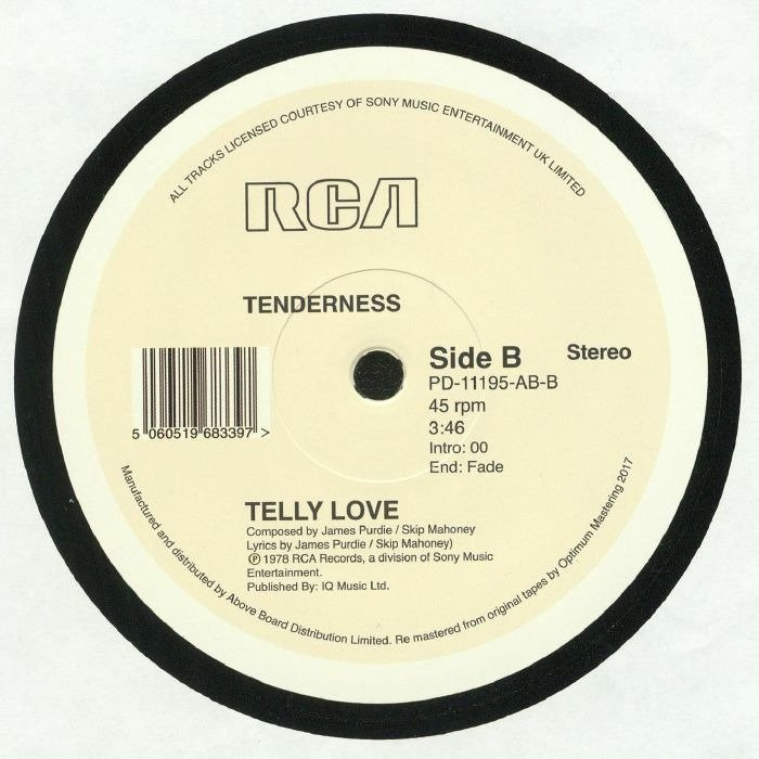 Tenderness - A short-lived Disco project helmed by James Purdie and Skip Mahoney only released one 45 and one 12" single during their brief existence. Known for their work with Chuck Brown & The Soul Searchers & Frank Hooker & Positive People and many more, this duo were undoubtedly a highly talented producer, songwriter and keyboardist combination. Originally released on RCA in 1978 'Keep On Trying' was an underground club hit. The record still packs an immense punch today, it's a mixture of tough streetwise drums and percussion and swooping dramatic strings and brass will surely hit the spot for Disco aficionados. The kind of record you can imagine causing all out pandemonium at the Garage while the scents of amyl and sweat fill your nostrils. The kind of record that would make everyone on the raised stages and podiums at the Powerhouse whoop and holler in collective joy as Frankie stylishly segues it into a punishing percussion break-down. Yep. It's THAT kind of Disco record, so rare and so coveted that even the infamous DJ Harvey put it over his knee and gave it a good editing way back when. There's been a shedload of poor imitations knocking around, dodgy Euro bootlegs etc, but this 2017 repress is from the MASTER TAPES (Yes, we can prove it) and is fully, 100% LEGIT in every way. 'Keep On Trying' - now available again, released in conjunction with RCA. Back on the streets. Same as it ever was! Essential Disco heat here, buy on sight!