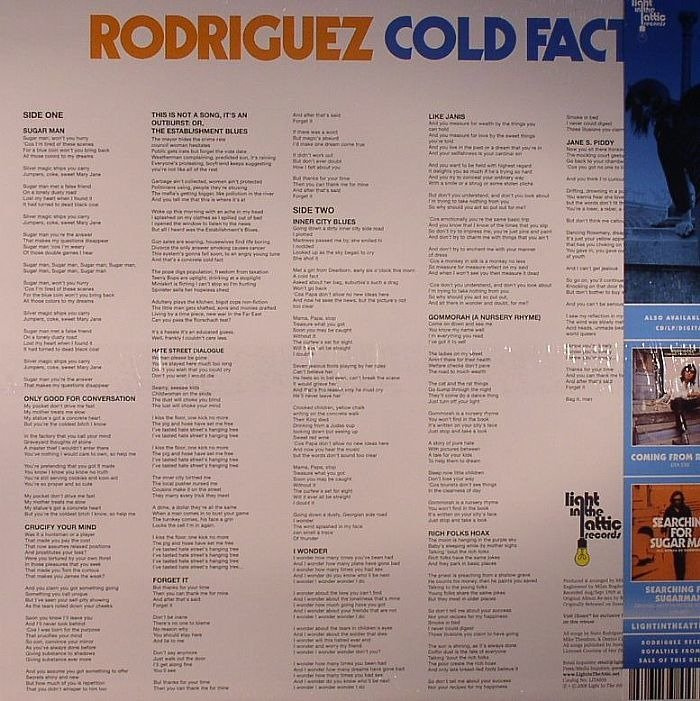It's one of the lost classics of the '60s, a psychedelic masterpiece drenched in colour and inspired by life, love, poverty, rebellion. TIP! The album is Cold Fact, and what's more intriguing is that its maker - a shadowy figure known as Rodriguez - was, for many years, lost too. A decade ago, he was rediscovered working as a menial day laborer in Detroit, Michigan. He was unaware that his defining album had become not only a cult classic, but for the people of South Africa, a beacon of revolution. Rodriguez recorded Cold Fact - his debut album - in 1969, and released it in March 1970. It's crushingly good stuff, filled with tales of bad drugs, lost love, and itchy-footed songs about life in late '60s inner-city America. 'Gun sales are soaring/Housewives find life boring/Divorce the only answer/Smoking causes cancer,' says the Dylan-esque Establishment Blues. But the album sank without trace, thanks, in part, to some of Rodriguez's more idiosyncratic behavior, like performing at an industry showcase with his back to the audience throughout. When the follow-up, 1972's Coming From Reality, also sold poorly, Rodriguez called an end to his recording career. He'd never even played a proper gig. And he got on with life. Over the years, he turned his hand to local politics, gaining a degree in philosophy, factory work and eventually, hard labour. Now, Light In The Attic is set to commit Cold Fact and Coming From Reality for an entire new audience, who can finally find out why - halfway across the world - Rodriguez is spoken of in the same reverent tones as The Doors, Love and Jimi Hendrix.