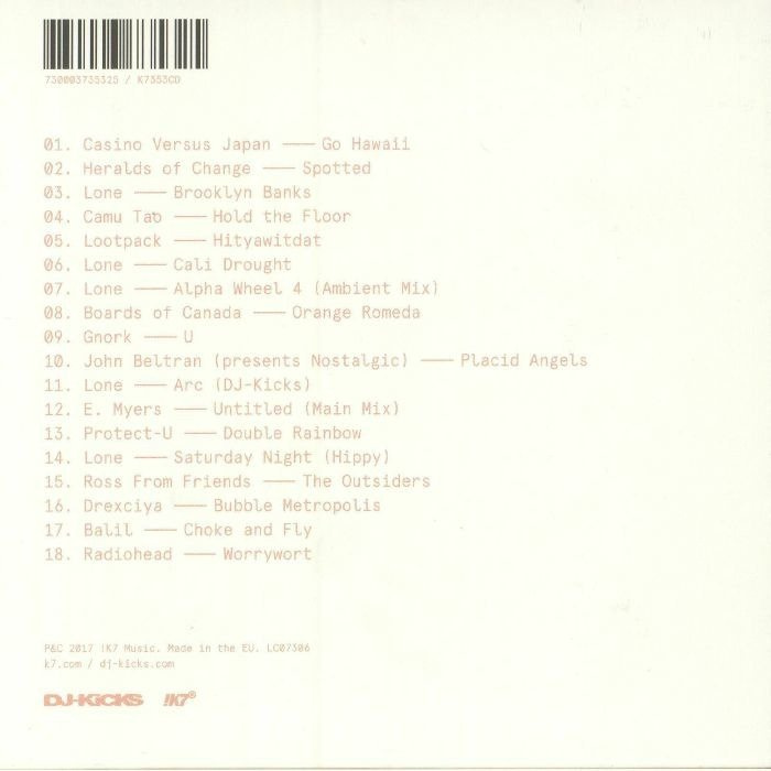 While now revered just as much for his kaleidoscopic, all-action club tracks as his similarly colourful downtempo explorations, it should never be forgotten that Lone began life as a maker of skewed, head-in-the-clouds beats. For this fine contribution to the DJ Mix series, the DJ/producer has decided to take us on a whirlwind tour of his influences and inspirations, brilliantly joining the dots between sunrise-friendly ambient, melodious electronic, blazed hip-hop, dazzling experimental beat-scapes, loved-up house and futurist techno. It's a thrillingly eclectic set, but one that holds together brilliant. While this is in part due to the use of a number of his own productions, it's also testament to his immense skill as a DJ.