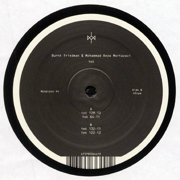 Mohammad Reza Mortazavi is the perfect companion to Burnt Friedman's steely, minimalistic shades of broken dub techno. The Iranian percussionist comes as a surprise addition to the Nonplace catalogue, but he certainly makes for an even more cerebral drumming experience than the already off-kilter world of Friedman's tunes. Both the A-side's mixes of "Yek" are just on the right side of dark, combining Eastern influences together with colder, more industrial executions from the West. On the B-side, we have a similarly frenetic experience, where metallic drums collide with deep baselines and polyrhythmic flows spanning the full circle. Well, this might just be our favourite Nonplace yet!