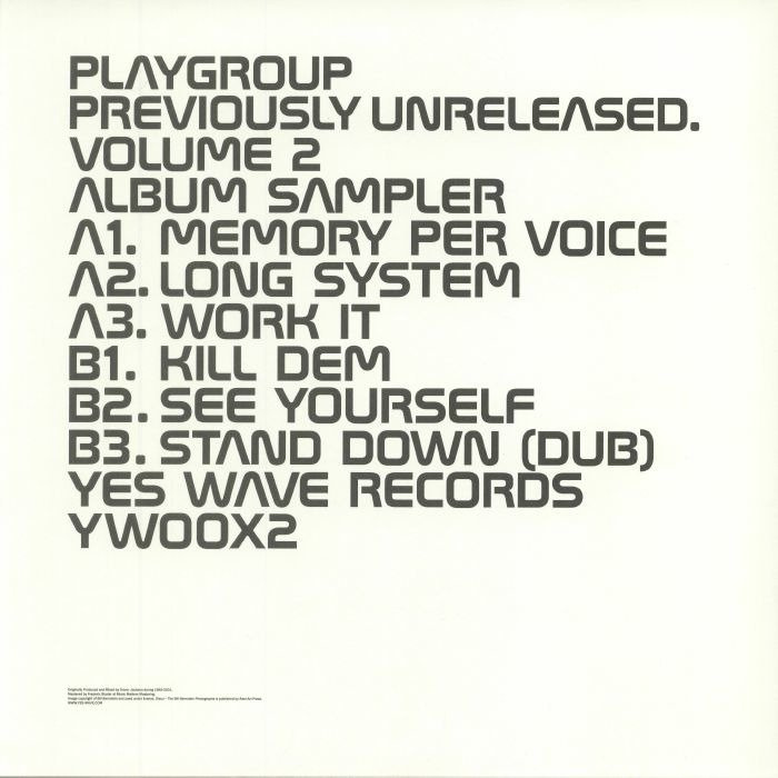 Following the success of last years Playgroup 'Previously Unreleased' album and its critically-acclaimed run of nine weekly 12' vinyl EPs, Trevor Jackson has compiled a second volume of 20 tracks (11 unheard and 9 previously vinyl only) released as a Limited Edition Double CD and 6 track vinyl sampler on Nov 3rd via Yes Wave records. The music featured is a collection of reworked demos and unreleased recordings. A hedonistic mix of raw Disco, Dub, Funk, Dancehall. Electro, New Wave & Post Punk that all still sound as relevant today as they did when initially recorded for the debut PLAYGROUP album during 1997 - 2001.