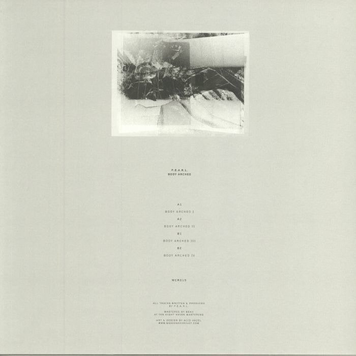 P.E.A.R.L. is no stranger to the Weekend Circuit inner circle. Having released his 'Desolation' EP on the London label in 2015, his unique and refreshing productions slot comfortably in to the label's sonic aesthetic. Pulsating, submerged field recordings and natural sounds bristle next to menacingly hewn tones, rhythms and textures, creating a strange and disorientating environment across 4 parts. EP opener 'Body Arched I' encapsulates this alien-esque landscape, beckoning us into the P.E.A.R.L. sound-world. Slowly unwinding drones gradually draw us in, layers of almost synthetic jungle sounds, field recordings and eerie atmospherics create images of unseen landscapes in our minds. One gets the impression that is merely the calm before the storm, it will be a long, dark and revealing night. Second part 'Body Arched II' ups the ante considerably, a blistering assault on the senses. Cavernous kick-drums dance with repeated synth lines and synewaves creating a narcotic, unforgiving and swirling miasma of epic proportions. 'Body Arched III' opens the second side of this formidable slab of vinyl. The energy levels are still high, the mood somewhat foreboding. Unapologetic, urgent and oozing kinetic energy this 3rd movement continues on a journey that will sweep you deeper into the blackest night, all systems failed, flying blind. In the right hands a piece like this can wield colossal power. The fourth and final part of 'Body Arched' taps into a more psychedelic vein, a minimalistic mantra-esque piece that continually spirals to the very outer edges of restraint. Listen closely and you can hear the shamans feet kicking up dust in the clearing. A pensive and sparse piece and the perfect note on which P.E.A.R.L. will leave us bewildered.