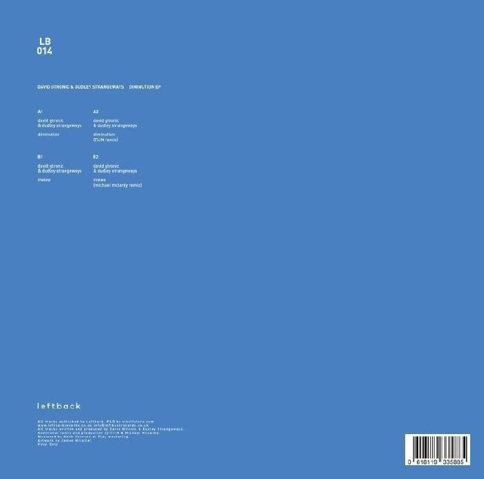 Dudley Strangeways & Michael McLardy's Leftback imprint has long been a reputable source of discerning house and techno. On their latest, they remind us just why they've become such a trusted label, with their 14th vinyl-only release emphasising the fact with some aplomb. A collaborative effort between label head Dudley Strangeways and prolific German producer David GTronic, the Diminution EP is a potent reminder of both producer's talents and is a typically eclectic listen to boot.