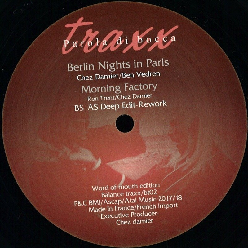 This project is a cutout t of the Prescription Underground sound. The 3 cuts written and produced by Chez Damier and Ron Trent. Morning Factory , reworked edit k by: BS As Deep, with ( Love is the Message) and (I come here to be Happy) By: Kai Alice (DJ friendly idiots). The New cut on this recording is a demo version From the H2H (Chez Damier and Ben Vedren) , Berlin Nights in Paris A track inspired from the Prescription record days .This project has a rare quality and would be a great accent to any record collection.