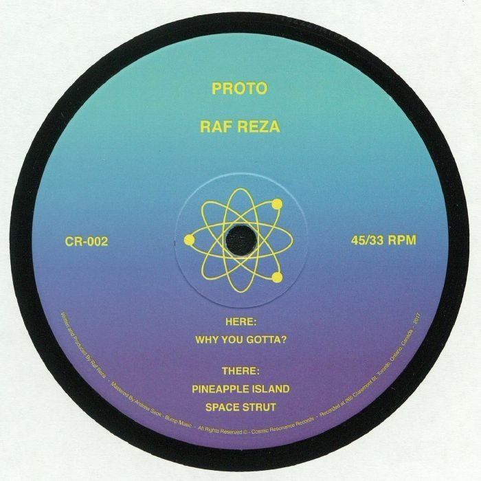Longstanding Toronto selector Raf makes the big transition to wax with this stunning debut 12" on Cosmic Resonance. Three tracks of groove gold, they capture his deep groove spirit and passion for the dance. "Why You Gotta?" licks with just little Latin tickle before bumping out a plump bassline juicy enough to make Bootsy blush. "Pineapple Island" is more of a slinky synth-laden proto house workout while "Space Strut" defies gravity with its sparse, electro funk. Full focus on the bassline, hold on tight for the entire trip...