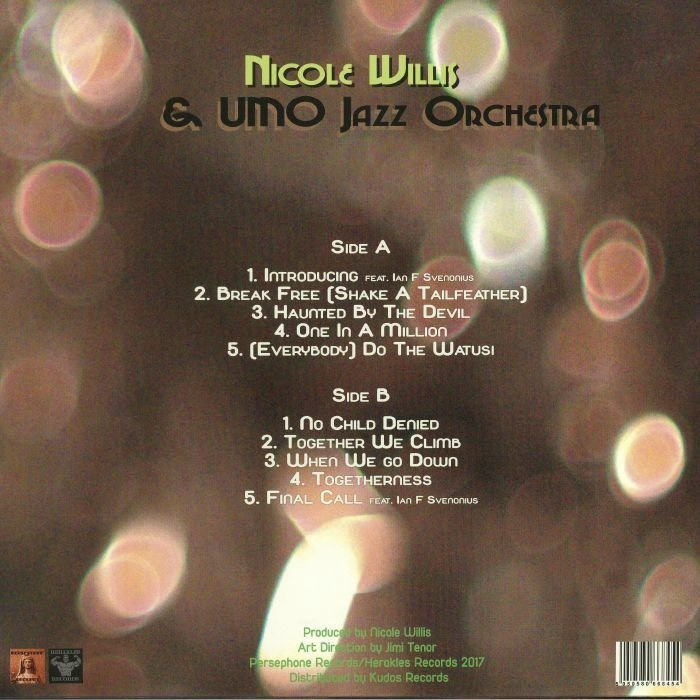 Nicole Willis, known for her collaborations with The Soul Investigators & Jimi Tenor produces an album including some of the tracks she composed with the former as well as originals specifically for a fresh collaboration with UMO Jazz Orchestra. Jimi Tenor, who is a multi-faceted artist, has penned all arrangements for the big band and their talented rhythm section. Pete Toikkanen who is a mega-talent guitarist from The Soul Investigators, along with the two, composed those original tracks that highlight their alternative influences. Indie god & personal hero of Ms Willis, Ian Svenonius introduces Ms Willis on the first track and wraps up the LP with a final plea.