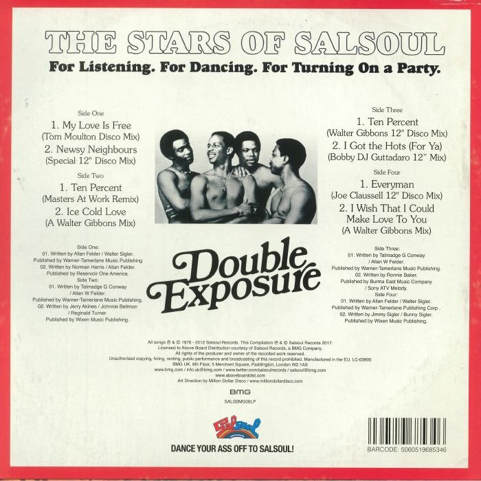 Having worked over the years with some of the biggest producers and arrangers in the game, Double Exposure have benefitted from the talents of people like Norman Harris, Tom Moulton, Bunny Sigler and even in later times, David Morales and Frankie Knuckles. This isn't to say the boys themselves were slouches though, their iconic vocals have laced many classics over the decades. Featured on this fine compilation is a collection of Double Exposure's biggest tracks, all the proper mixes are here, untouched, respectfully sequenced and re-presented in their entirety. Mixes from Walter Gibbons, Tom Moulton and Bobby 'DJ' Guttardo all included. Loud and extended 12" mixes are the order of the day. A truly essential package for the die-hard Disco aficionado or for those who are exploring this most important movement in dance music for the first time. Curated with the full input and backing of Salsoul Records and carefully selected to reflect the truly timeless nature of the music contained within. For listening, for dancing, for turning on a party! Remastered by Optimum Mastering. Artwork & design by Million Dollar Disco.